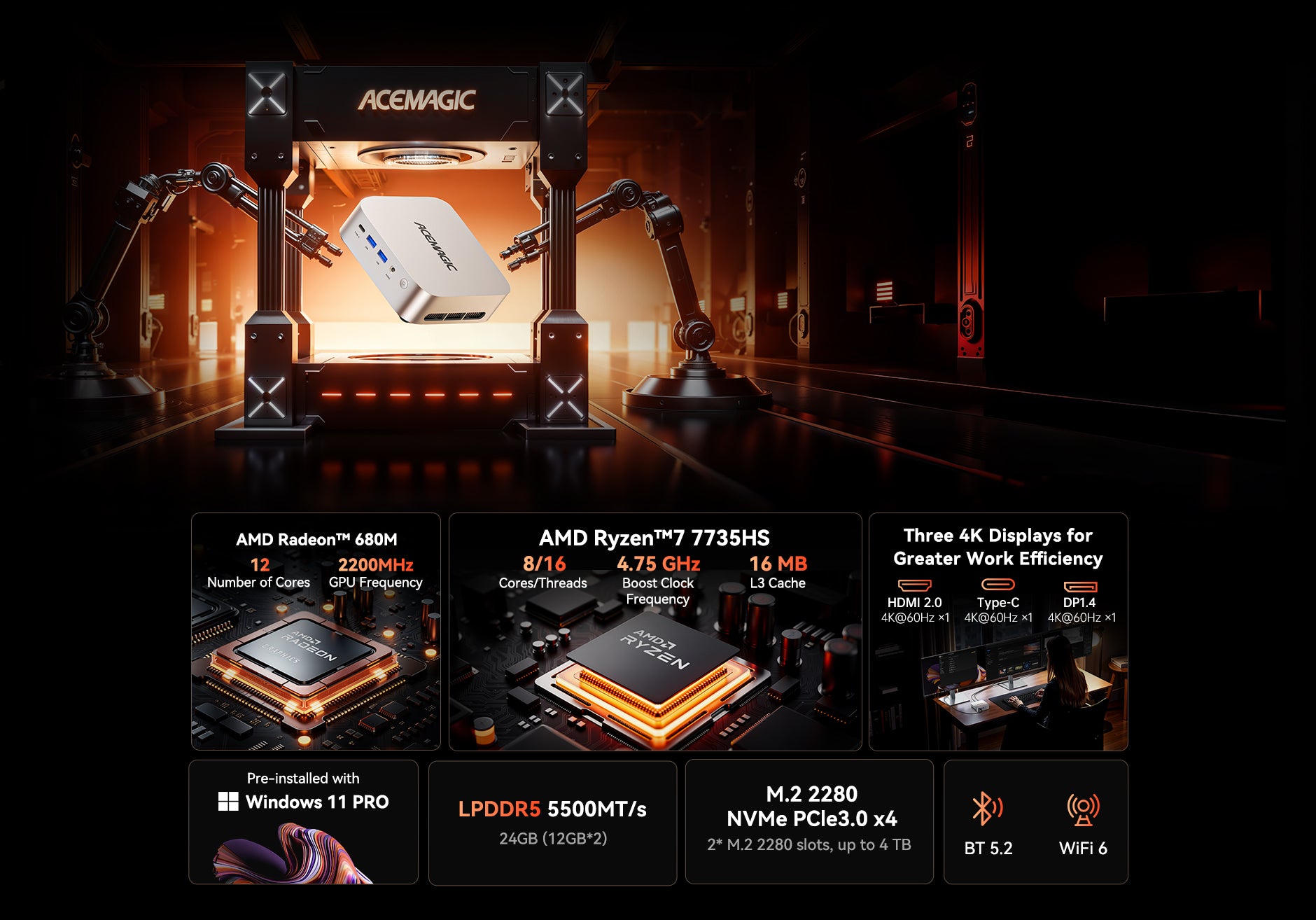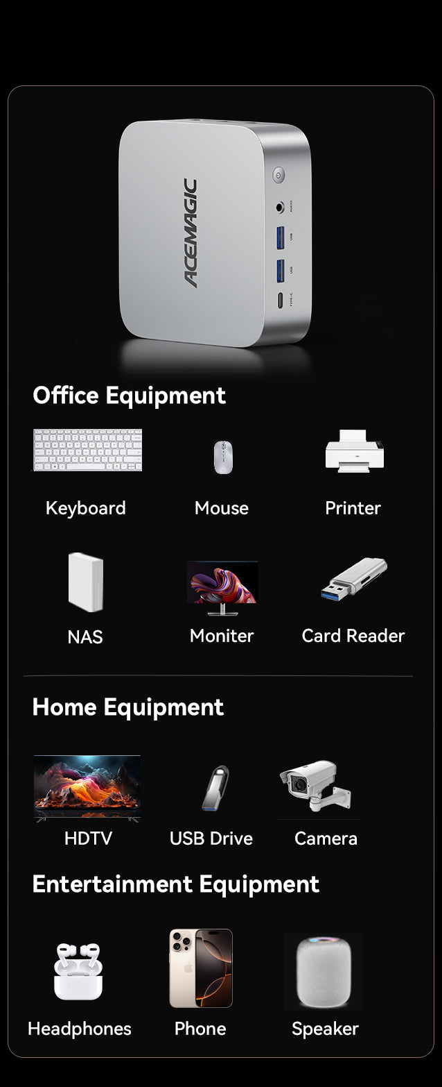 As a freelance illustrator, I need a powerful device I can carry with me. The M1's metal chassis is thin and durable, making it easy to carry around in my bag. The 32GB RAM and 1TB SSD allow me to easily run C4D and Blender, rendering 30% faster than a laptop. The customer service is professional and helpful, and I'll definitely choose ACEMAGIC for my next upgrade!