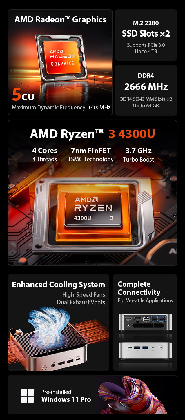 CPUAMD Ryzen™ 3 4300U Processor,
